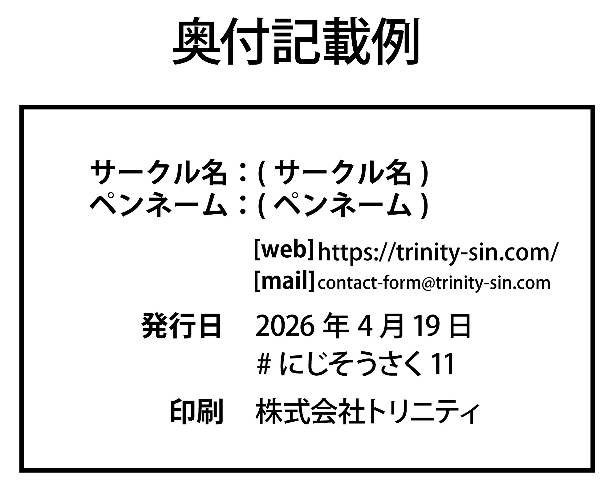 奥付に必要な情報については、下記をご参照ください。