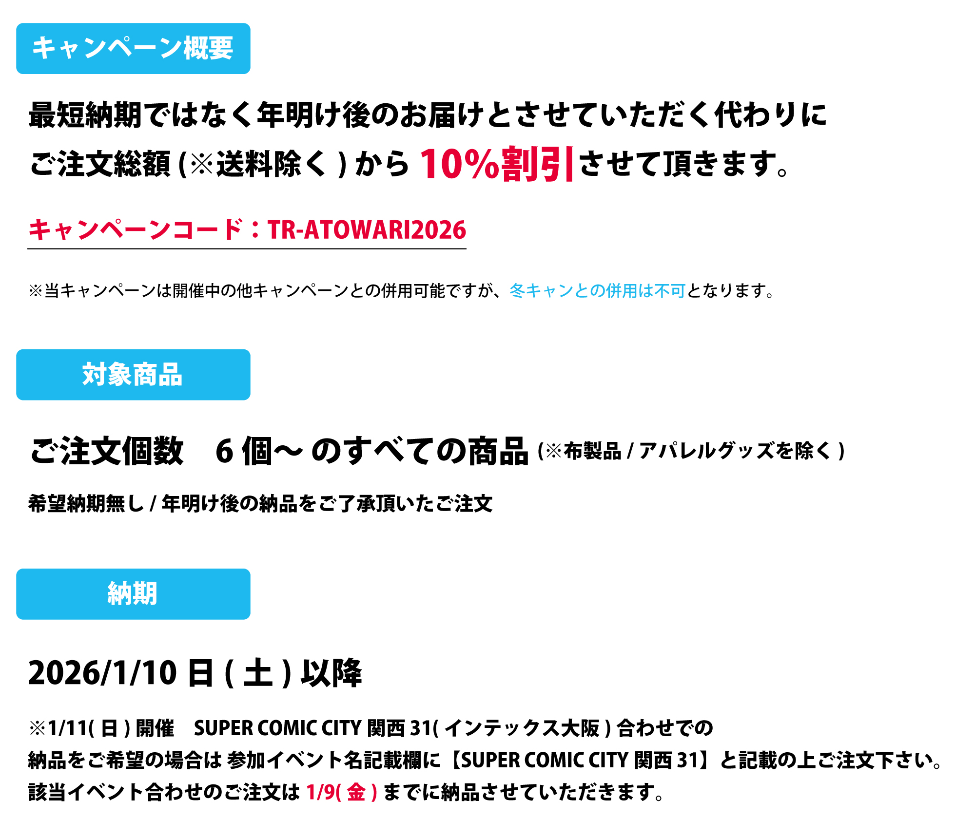 冬コミ後納品特別割引キャンペーン