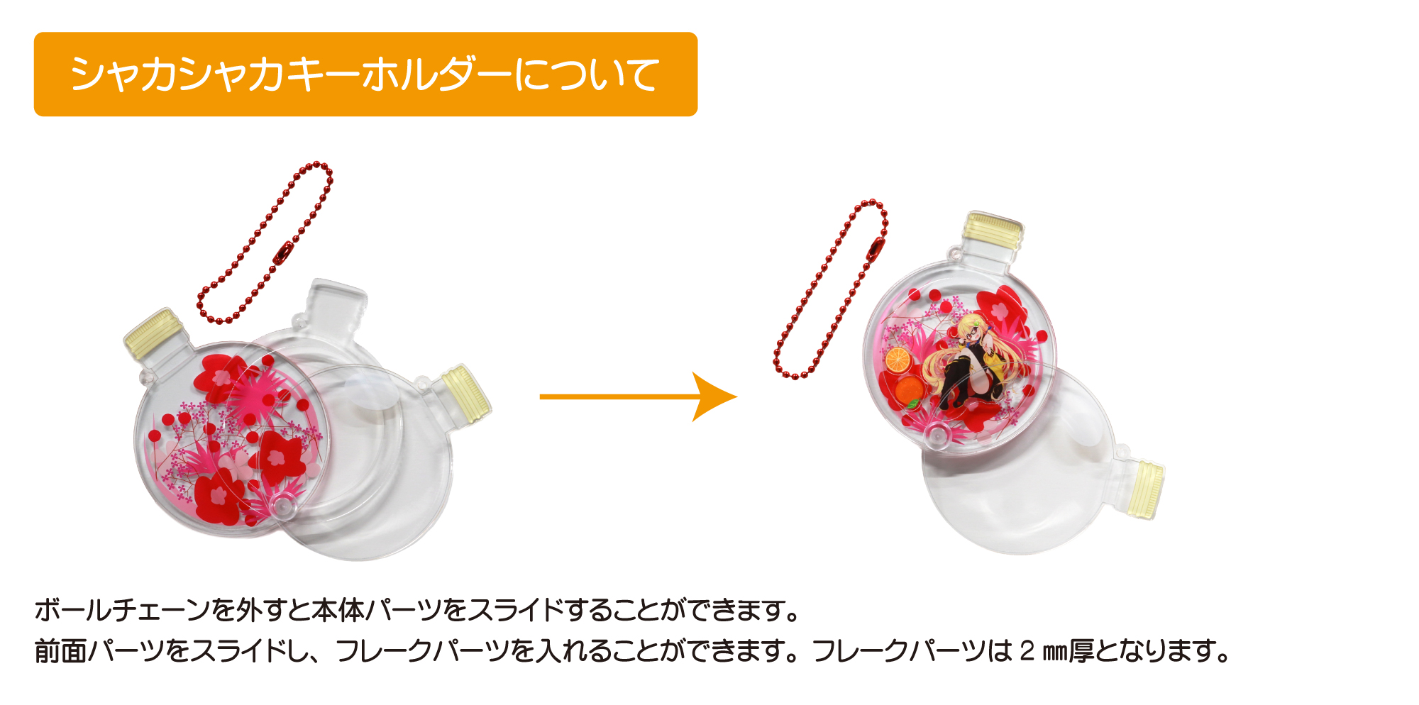 自由な形でシャカシャカキーホルダーが作れる!