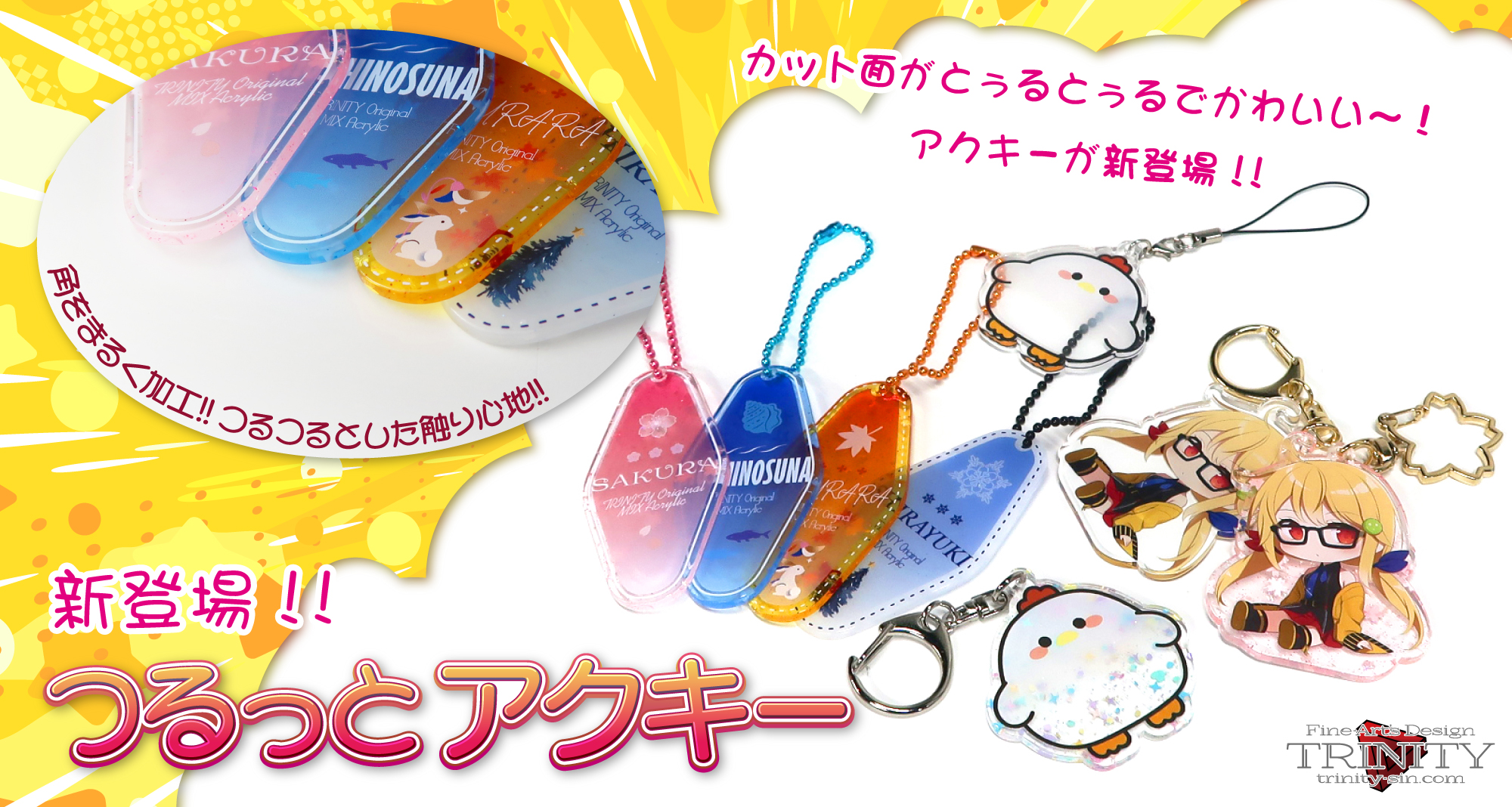 第一弾として、アクリルチャームでつるっと加工サービスを開始いたします!ワンランク上の表現として、ぜひご活用ください。